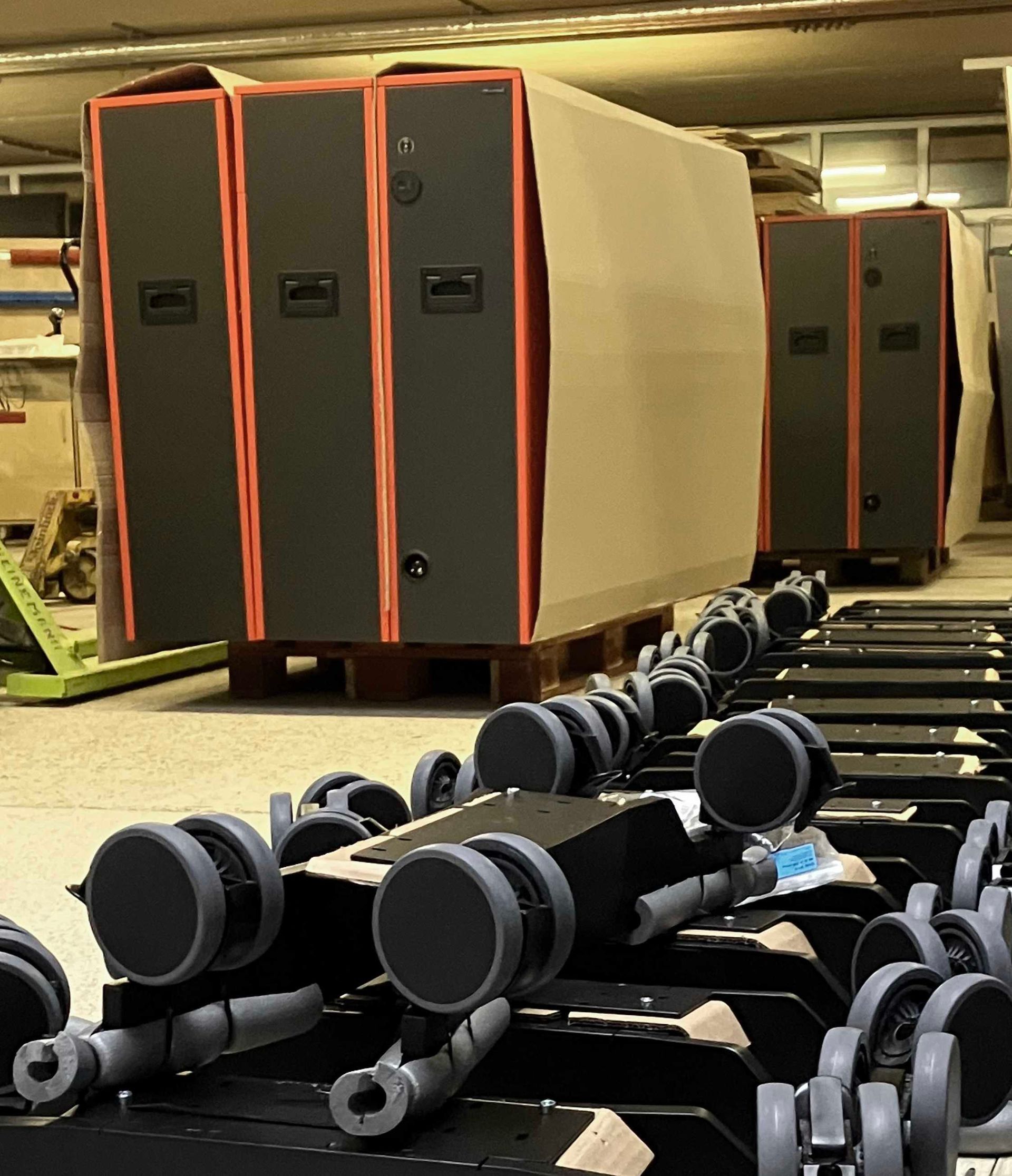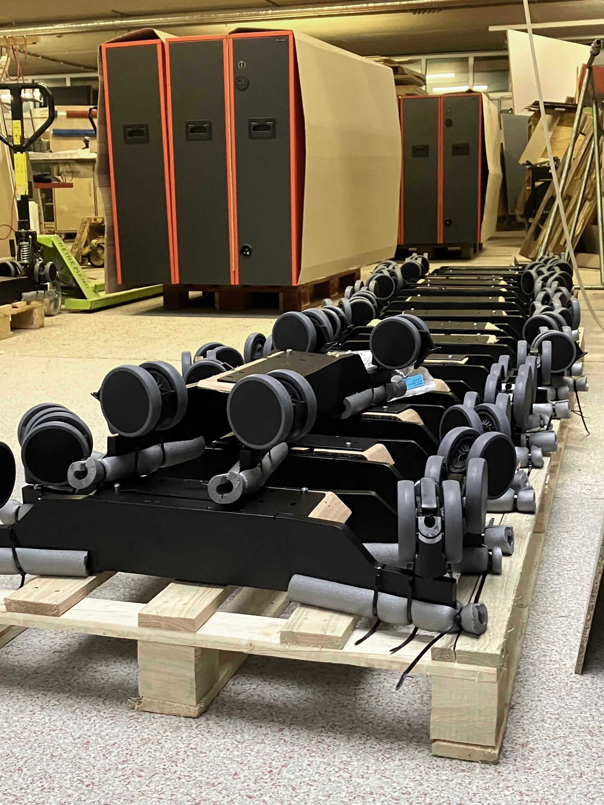 Alle Möbelteile werden im digitalen Prozess organisiert und für die Bestückung mit dem Lift-Bausatz vorbereitet.