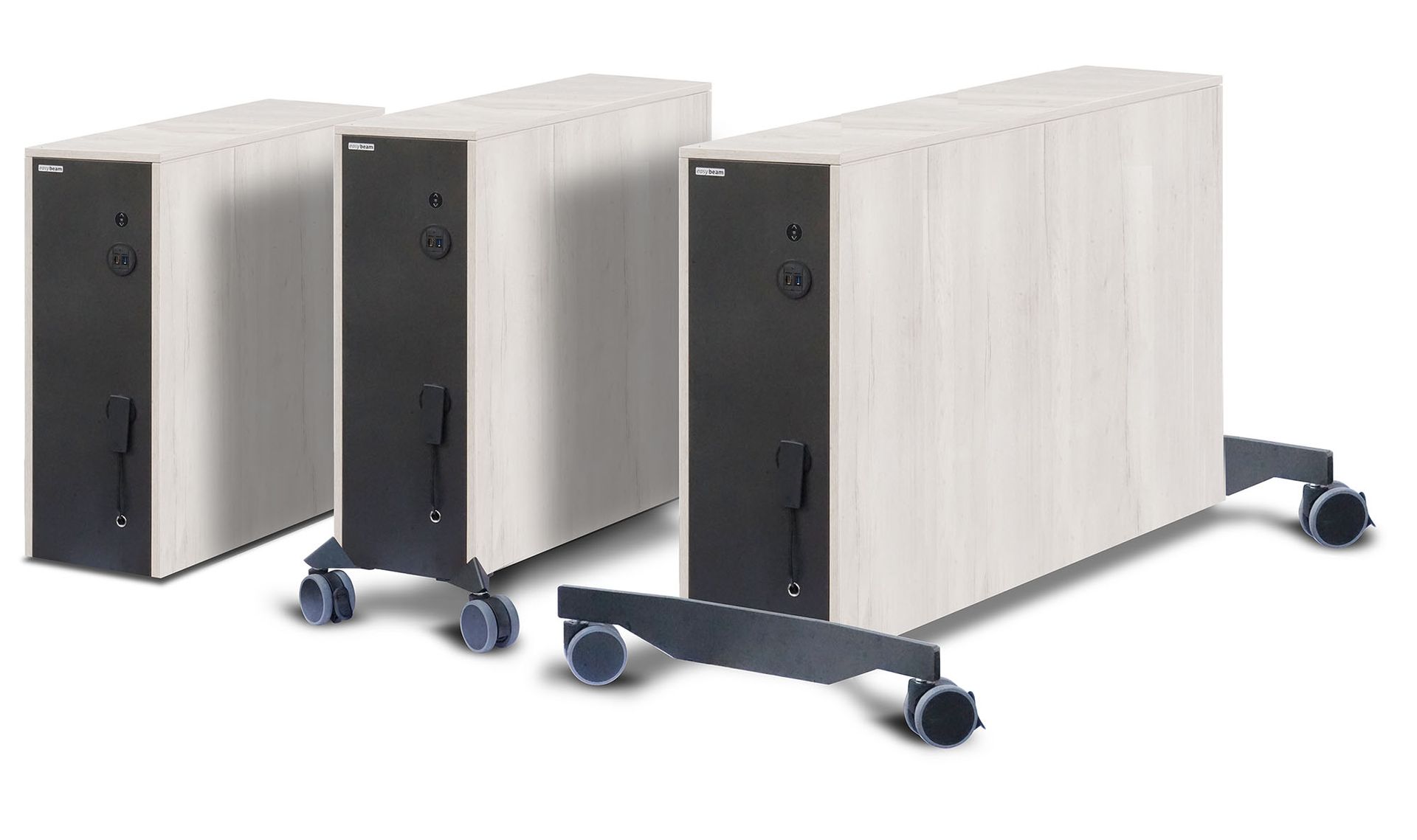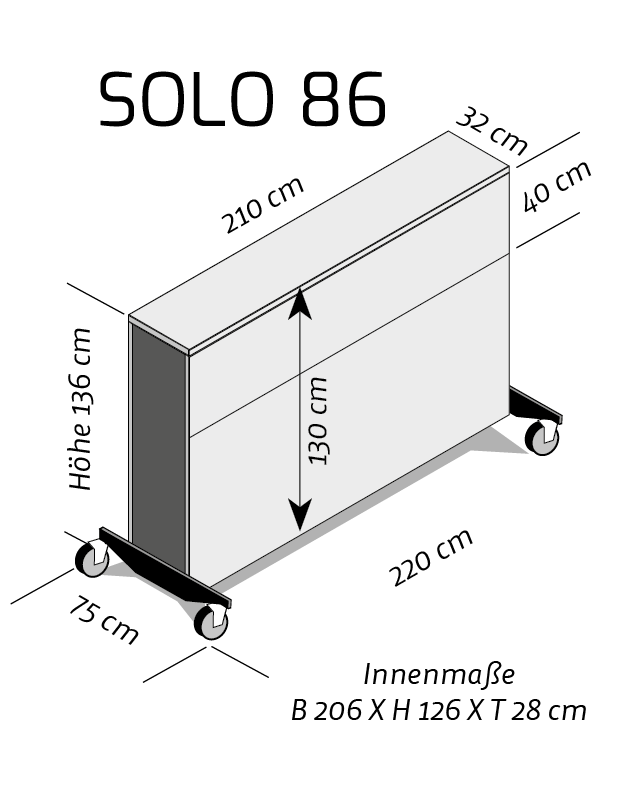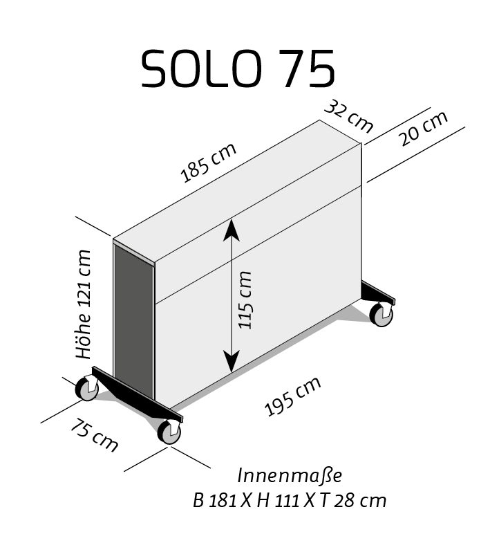 Die SOLO-Möbel sind modular gebaut und können mit oder ohne Rollen geliefert werden. Alle Teile sind verschraubt und austauschbar – wichtig z.B. bei Beschädigungen.